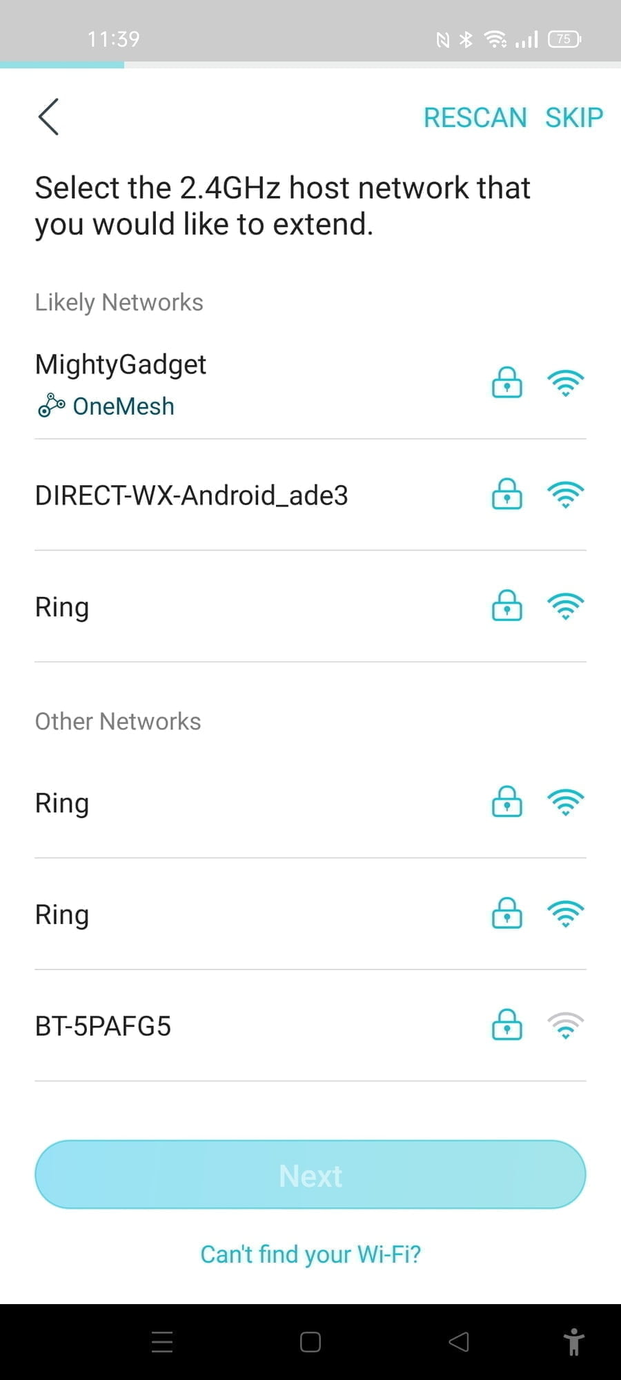 Once connected to the RE505X, it will identify Wi-Fi SSIDs which it can extend. Similar to the Netgear EAX80n, it looks like this will work as a traditional extender, extending any Wi-Fi network you have. However, it will identify OneMesh compatible networks and highlight this.
