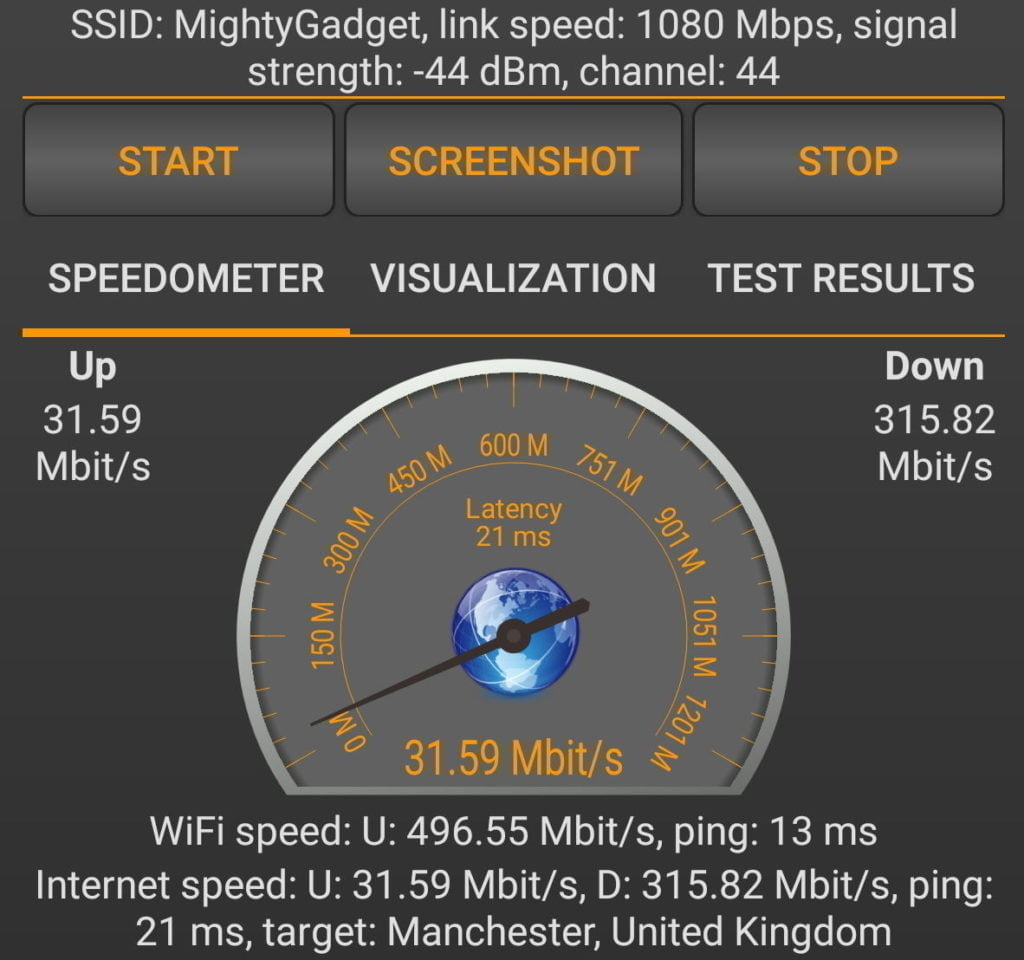 Most people won’t be using a device such as that though, so a normal Wi-Fi 5 connection rate is 866Mbps, and with this, it was able to achieve an impressive (for 2×2 Wi-Fi 5) 649Mbps.