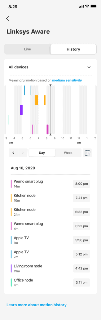 With this optional service, your router can detect disruptions to your wireless mesh network as someone walks around inside your home, using multiple WiFi clients to triangulate precisely where the motion occurred. It will then send an alert to your smartphone.