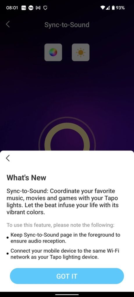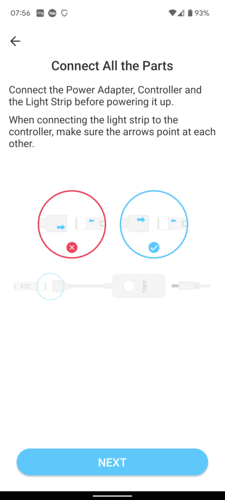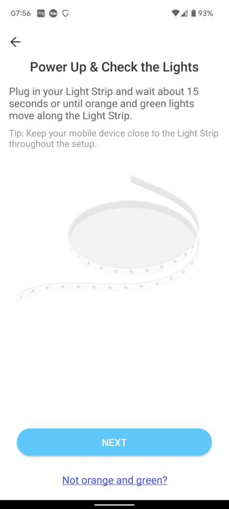 With the lights on, the Tapo app quickly identified the lights, and I was able to pass over my 2.4Ghz WiFi password without issue.