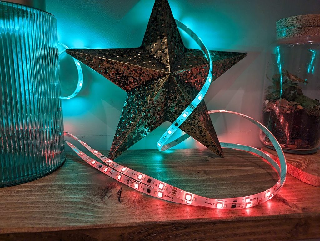 I am impressed at how bright this light strip can go. They don’t make any claims for the RGB colours but state 1,000 Lumens. I wouldn’t rely on it as the main light for a room, but it works well when used as the main light for mood lighting when I have friends and family around.