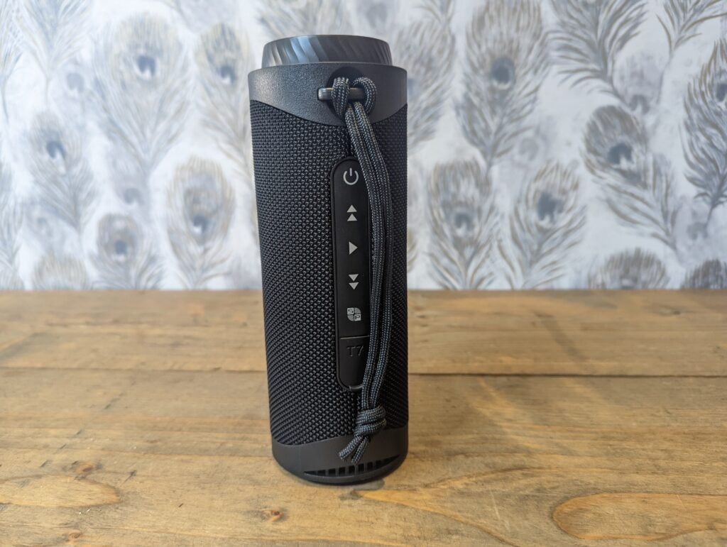The Tronsmart T7 looks like a lot of portable outdoor speakers with its cylindrical shape and tough black plastic body. It feels very durable, and I am sure it can handle a few drops on the floor.
