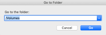 Step 8: Type in /Volumes and hit Enter.