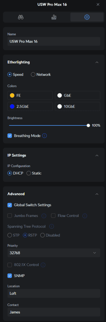 The USW-Pro-Max-16’s performance aligns well with its specifications, offering reliable switching capabilities for small to medium-sized networks. The switch’s Layer 3 features, while not as comprehensive as some enterprise-grade switches, provide adequate functionality for inter-VLAN routing and basic network segmentation.