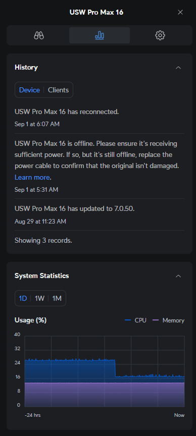 The UniFi Network application provides a comprehensive interface for managing the USW-Pro-Max-16, along with other UniFi devices on the network. The user interface is clean and intuitive, offering a good balance between ease of use and advanced features.