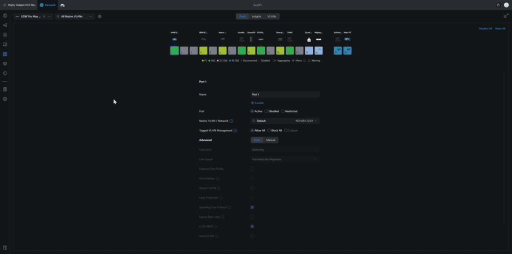 Once adopted, the switch can be configured through the UniFi Network application. This centralised management is one of UniFi’s strengths, allowing for easy configuration and monitoring of all UniFi devices on the network.