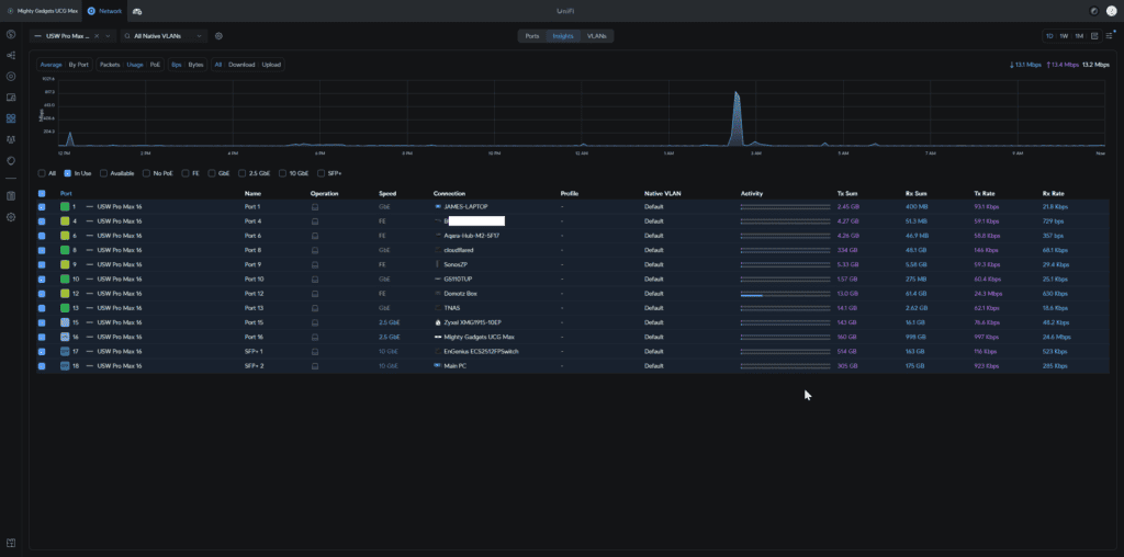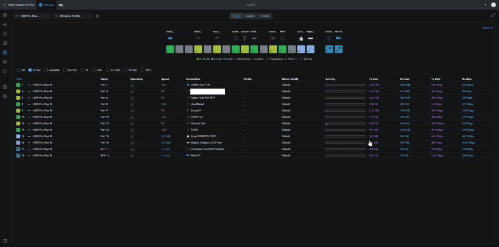 The switch’s integration with the UniFi ecosystem is another strong point. For those already using UniFi products, the USW-Pro-Max-16 slots in seamlessly, offering centralised management and monitoring through the UniFi Network application.