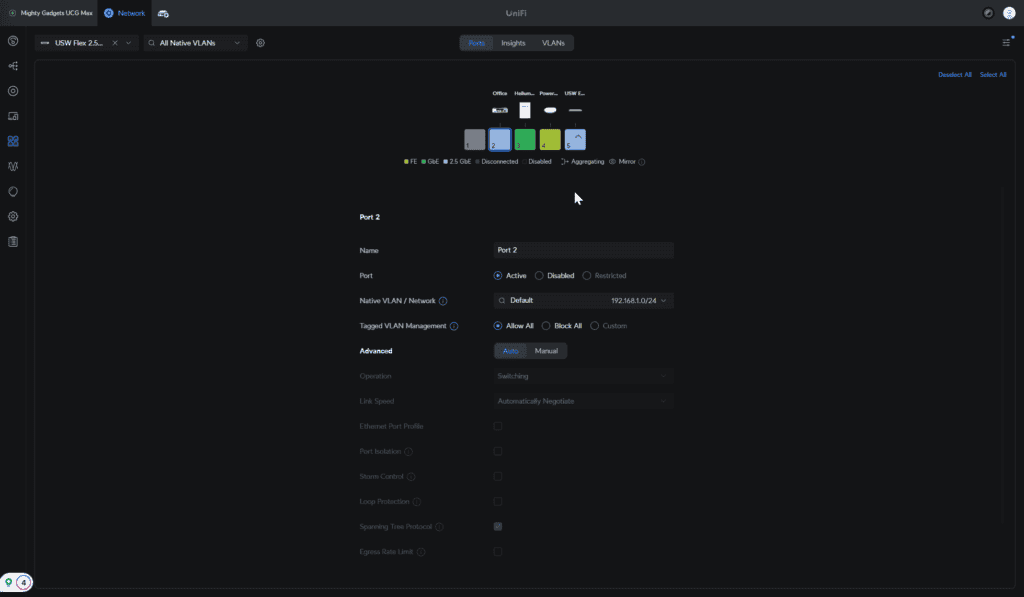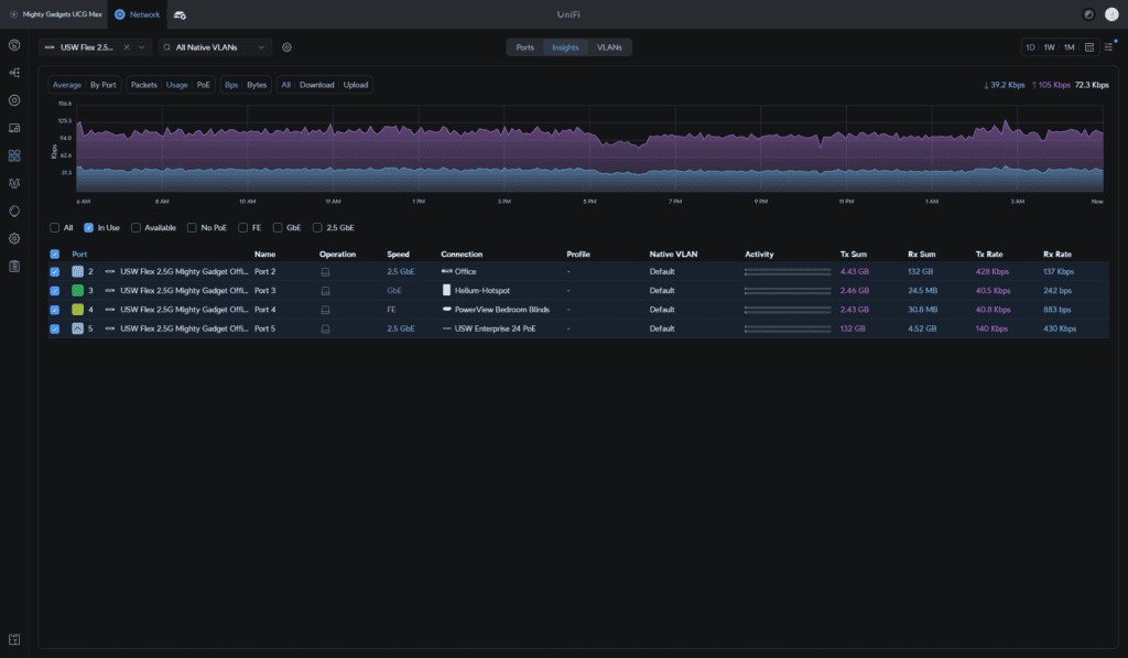Insights provide useful feedback about the traffic utilisation across each port, and the VLAN tap allows you to assign a VLAN to each port.