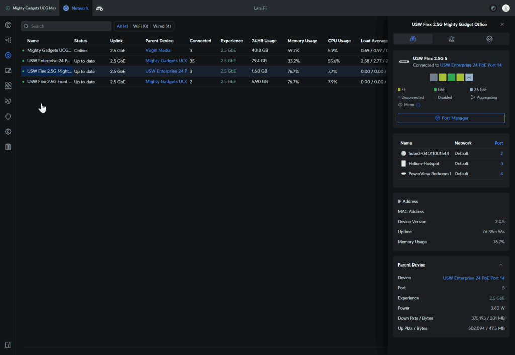 Then within the port management settings, you can see the port utilisation and what is connected to the ports.