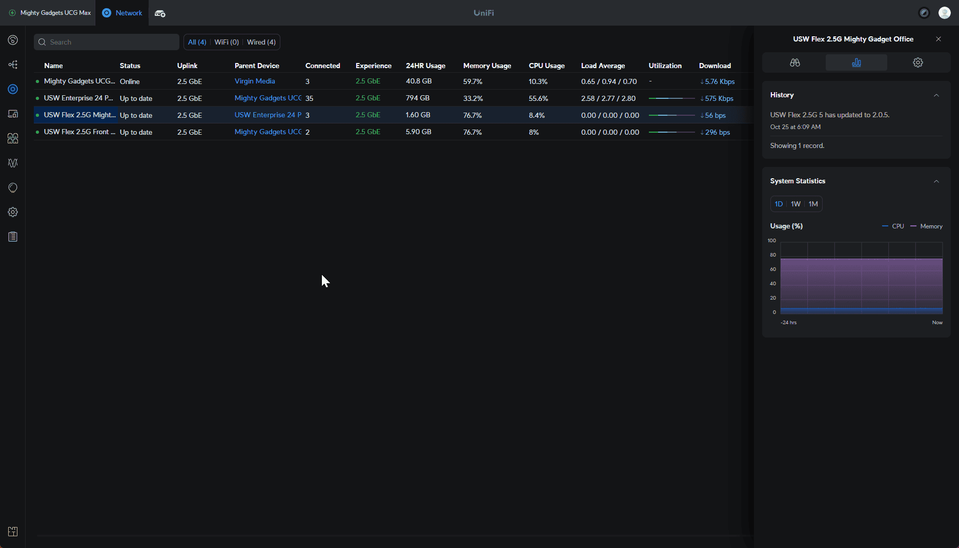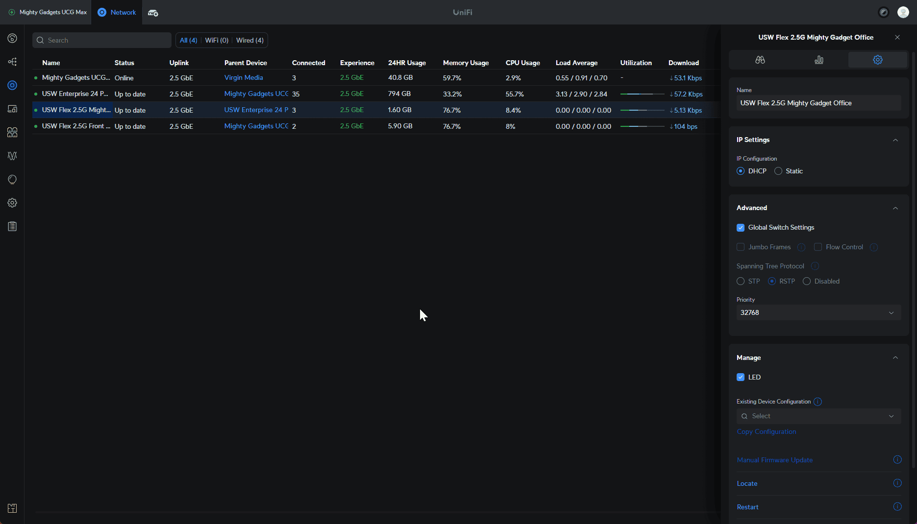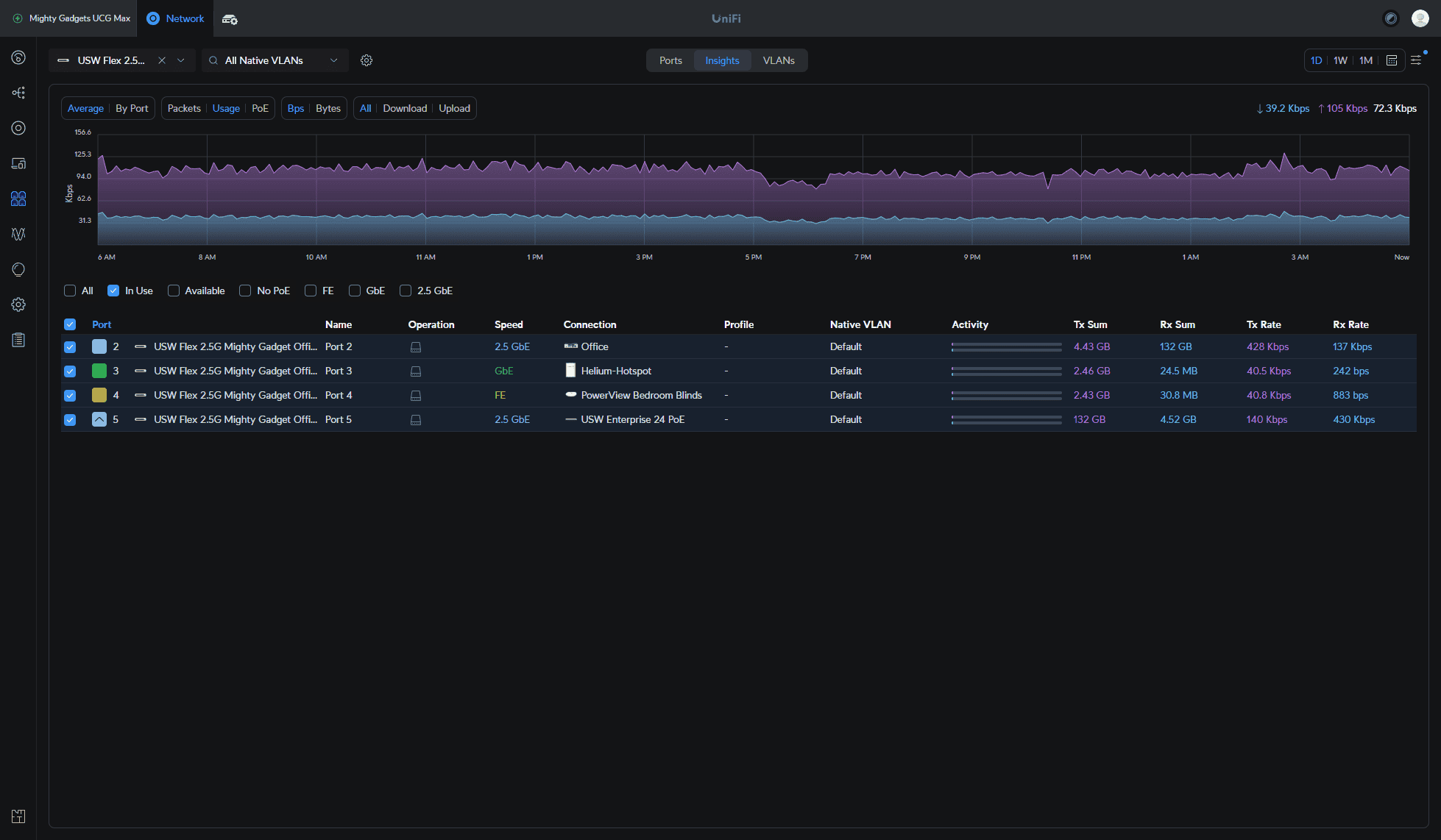 Then within the port management settings, you can see the port utilisation and what is connected to the ports.
