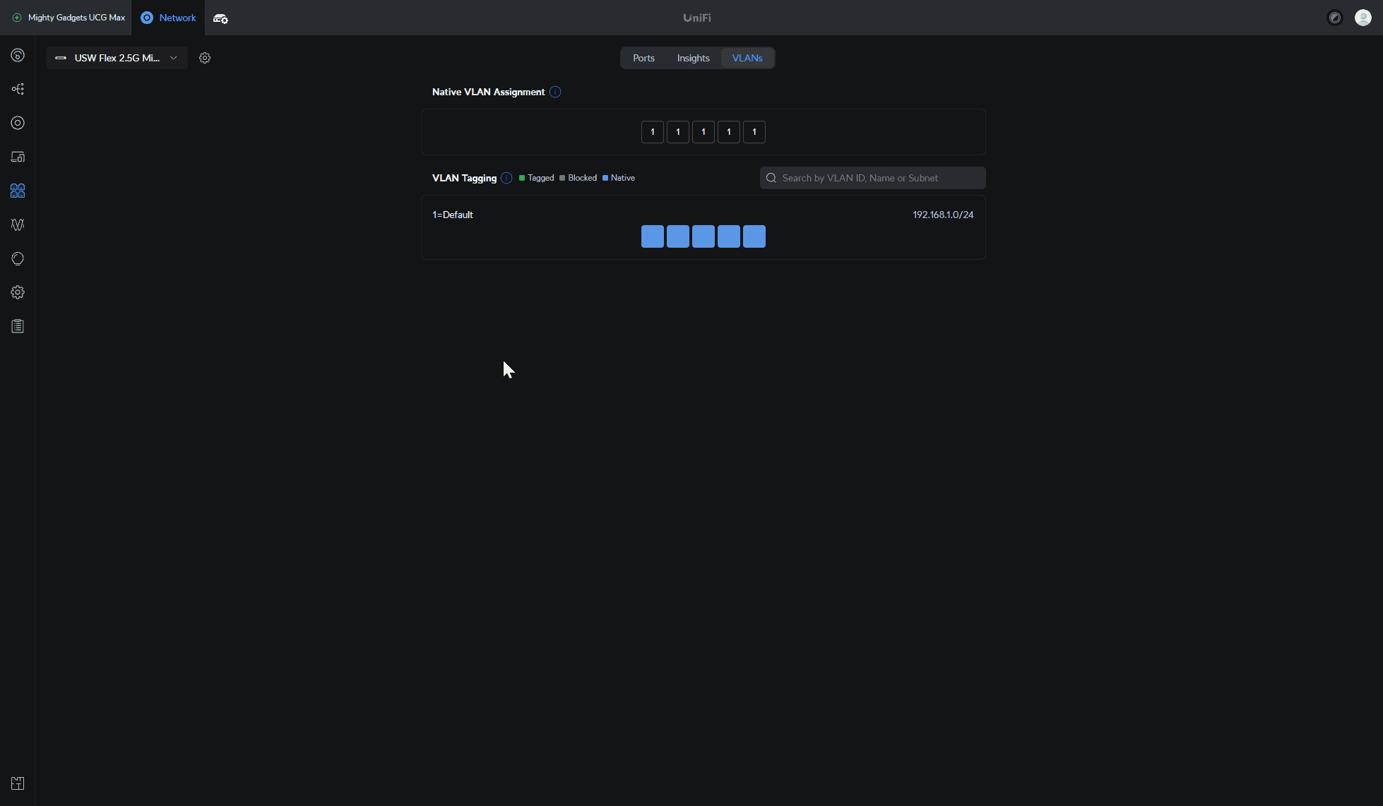 Insights provide useful feedback about the traffic utilisation across each port, and the VLAN tap allows you to assign a VLAN to each port.