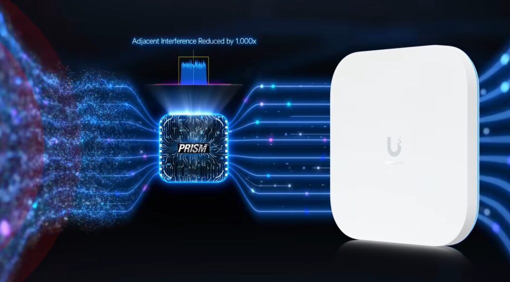 PRISM (Proprietary Radio Isolation Shield Module) is a patented active RF filtering technology developed by Ubiquiti. This technology is designed to significantly reduce adjacent channel interference, which is crucial in densely populated Wi-Fi environments.