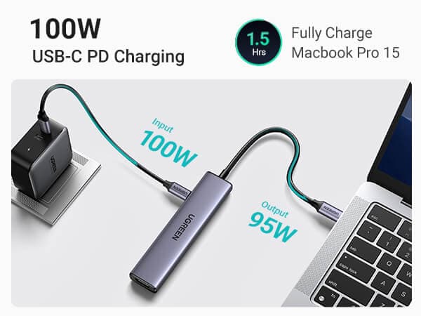 I’d say the most important aspect is the support for the passthrough of 100W USB-C Power Delivery. This is more than enough to charge most lightweight laptops now, even many gaming laptops support 100W USB-C PD for when you are not gaming.