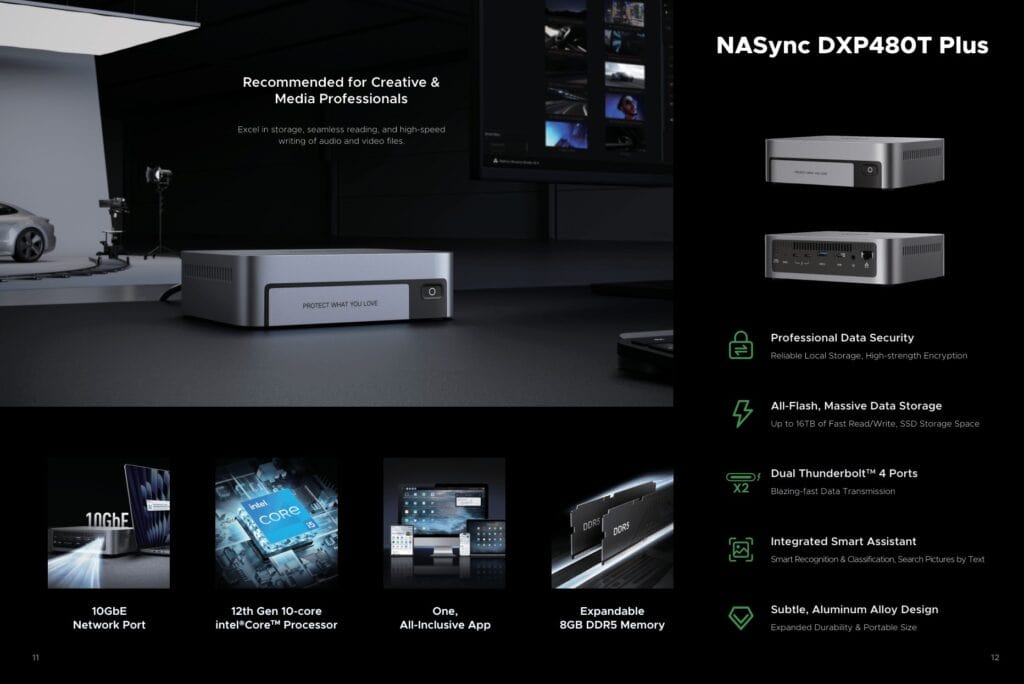 The DXP480T Plus is tailored for creative and media professionals. It features: