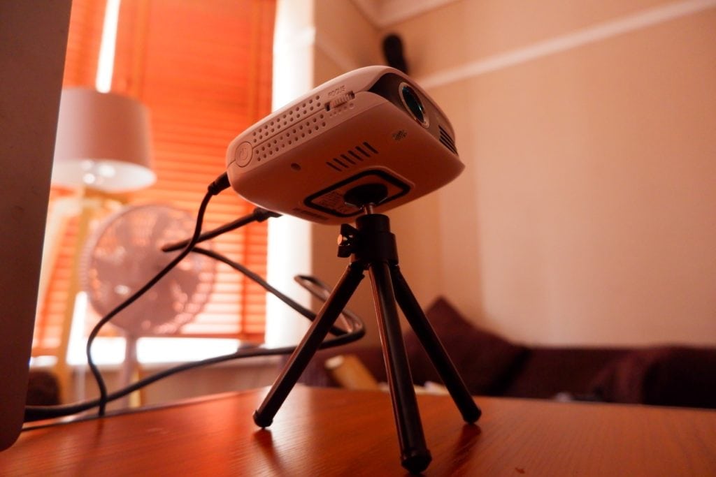 Because it is just 280g I had some difficulties plugging things in and it staying in place. The HDMI cable wanted to topple the projector over when I used the included tripod. However, with a little fiddling, I got things to remain in place, you just need to be careful not to knock things.