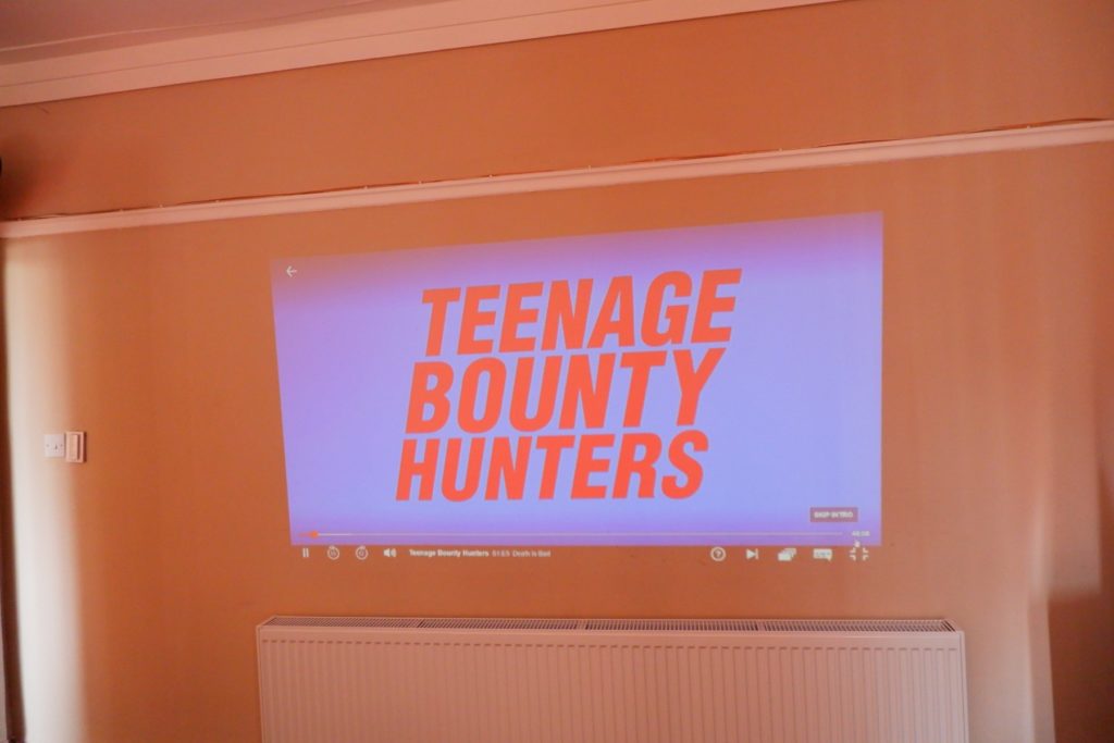 So for a start, the room needs to be quite dark to get the best picture possible, and the 800×480 resolution means the quality of the image is never going be the same as your TV at home.