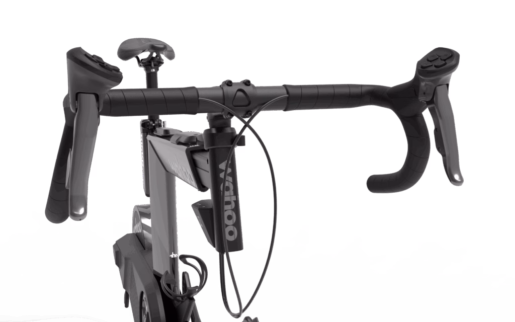 Comfort dictates the other hardware updates. The KICKR BIKE PRO is now equipped with a Fi’zi:k Aliante R5 saddle, upgraded Solocush handlebar tape, and an entirely new ergonomic handlebar designed specifically for indoor sessions. These upgrades are intended to make multi-hour indoor rides more bearable, which matters for anyone putting in serious base work through winter.