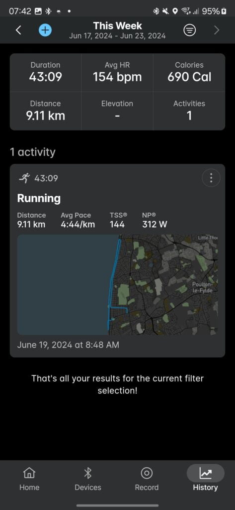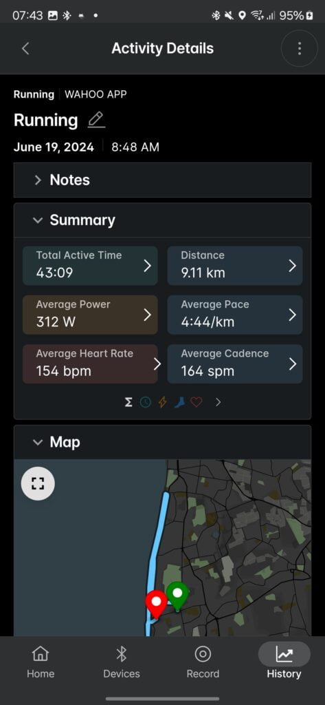 The Wahoo app is good for tracking activities if you don’t have a compatible device. You can pair up and connect multiple external sensors. For example, I paired up my Stryd when I went for an outdoor run.