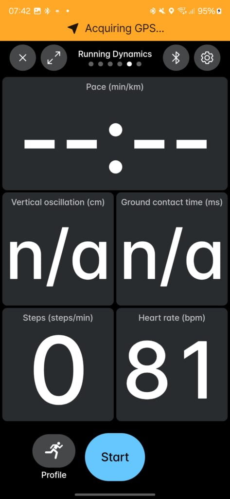 There are also no running dynamics, such as running power, ground contact time, and vertical oscillation.