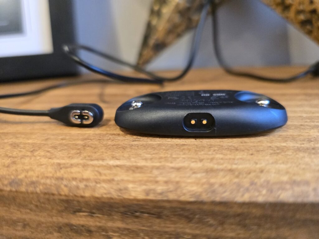 The downside to the rechargeable battery is the magnetic cable that you need to charge it with. With 100 hours between charges, my ADHD brain is never going to be able to find it. Thankfully, Wahoo have taken a very sensible approach. As you would hope, they will sell it on their website, but the magnetic charger is exactly the same as the one used on Shokz headphones and Amazon has plenty of third party chargers for as little as £7 for two.