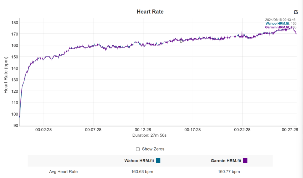- Wahoo Trackr Heart Rate: 154.08 bpm (took a few seconds to get my phone out and pause the app)