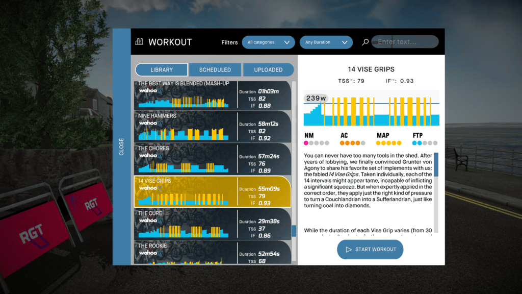 Wahoo X offers the most complete training app for cyclists – with tools for both indoor or outdoor riding. The subscription provides access to both SYSTM and RGT, and with this latest development you can now have a consistent experience across both platforms, in addition to the ELEMNT BOLT and ROAM bike computers – where these workouts are also available. If you are following a training plan in SYSTM your scheduled workouts will be available for you in RGT, all you need to do is pick where in the world you will complete your session. All training plans are included as part of the Wahoo-X membership, which offers an extensive workout library to select from, users can filter this – based on time available or type of training session.