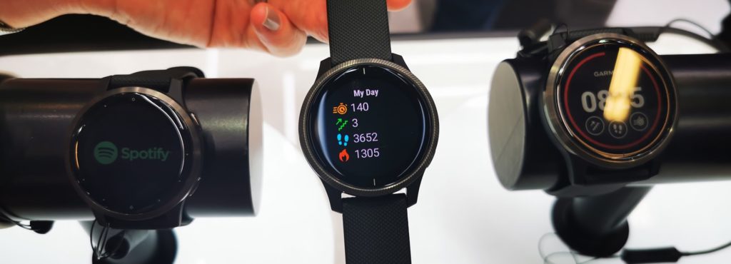 Not the best photo, but the Venu in the centre with the two different sized Vivoaactive 4 watches either side