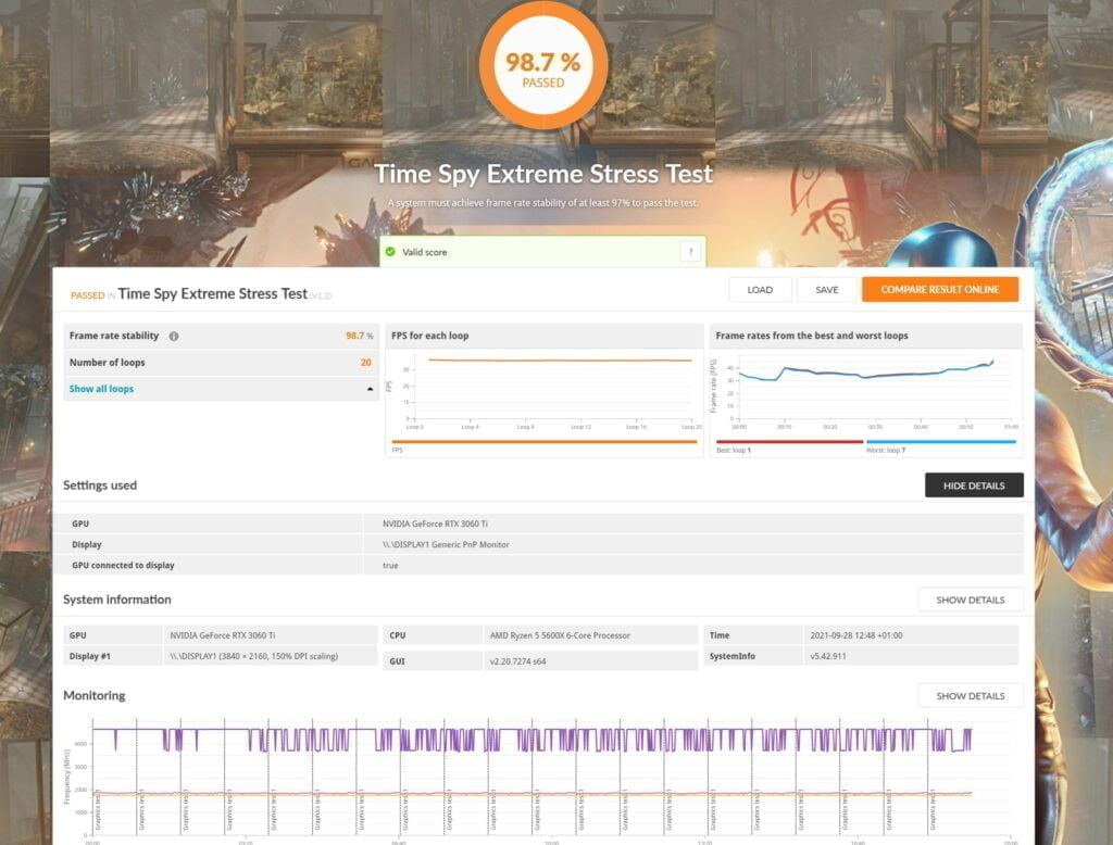 For actual gaming, the RTX 3060 Ti handles almost everything you throw at it with ease. Cyberpunk 2077 is the only game that I tried that needed some settings tweaking if you want to keep the FPS high. Other games such as Watch Dog Legion ran with no problems at all.