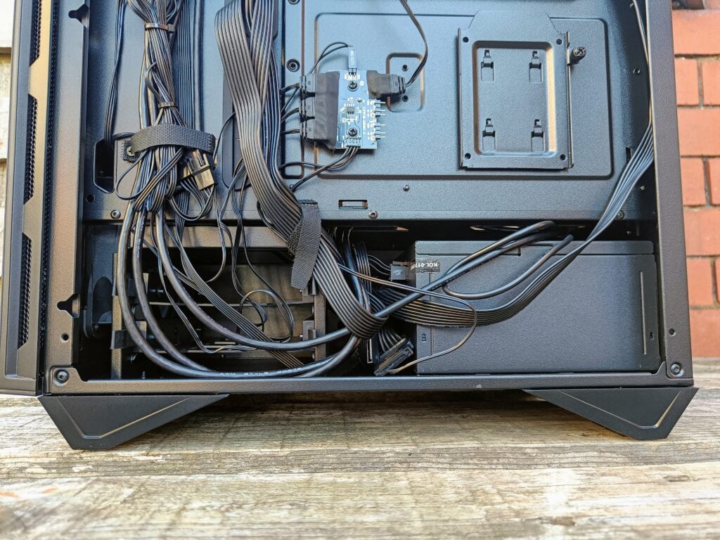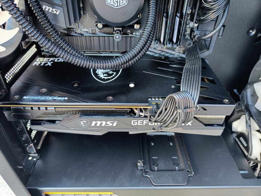 All the cables are neatly organised with nothing getting in the way of airflow. The GPU has a metal backplate, so there is no sign of sagging or any need for a support.