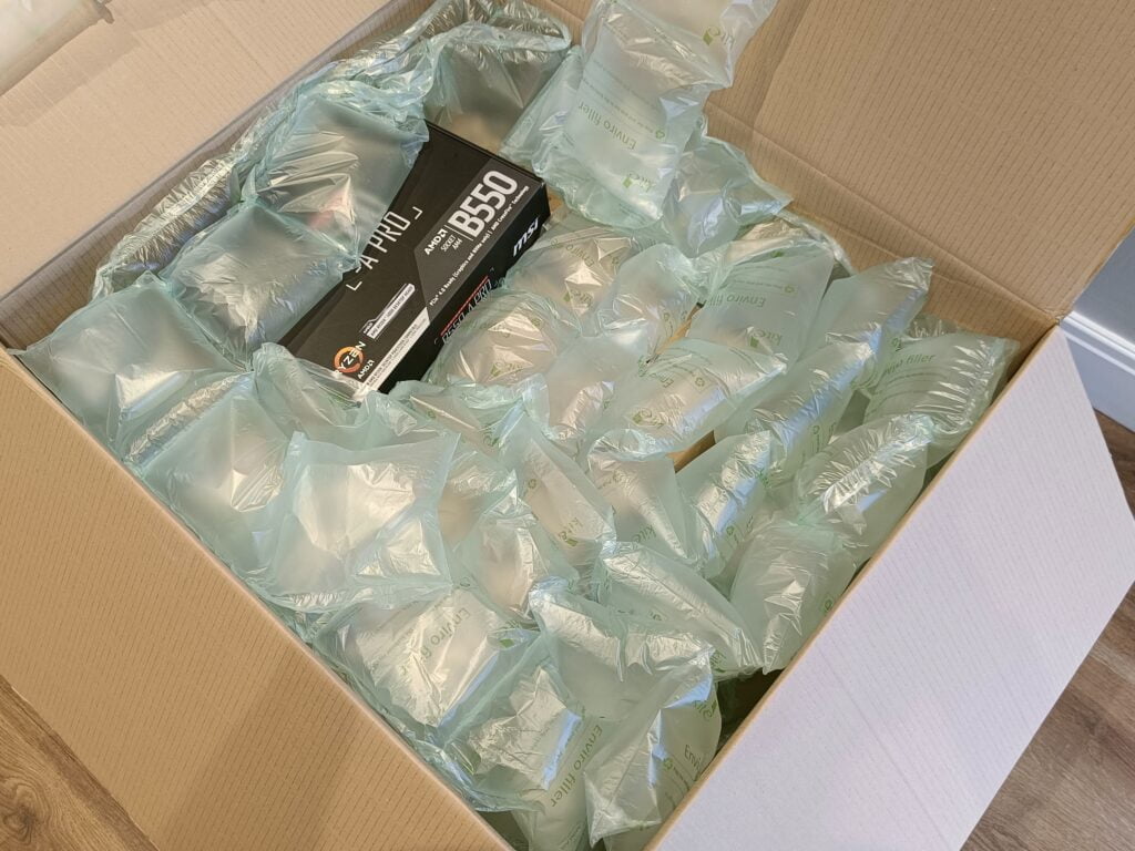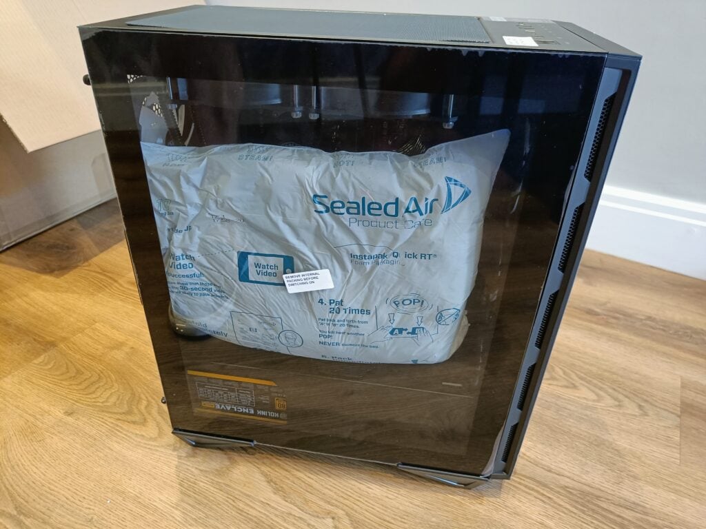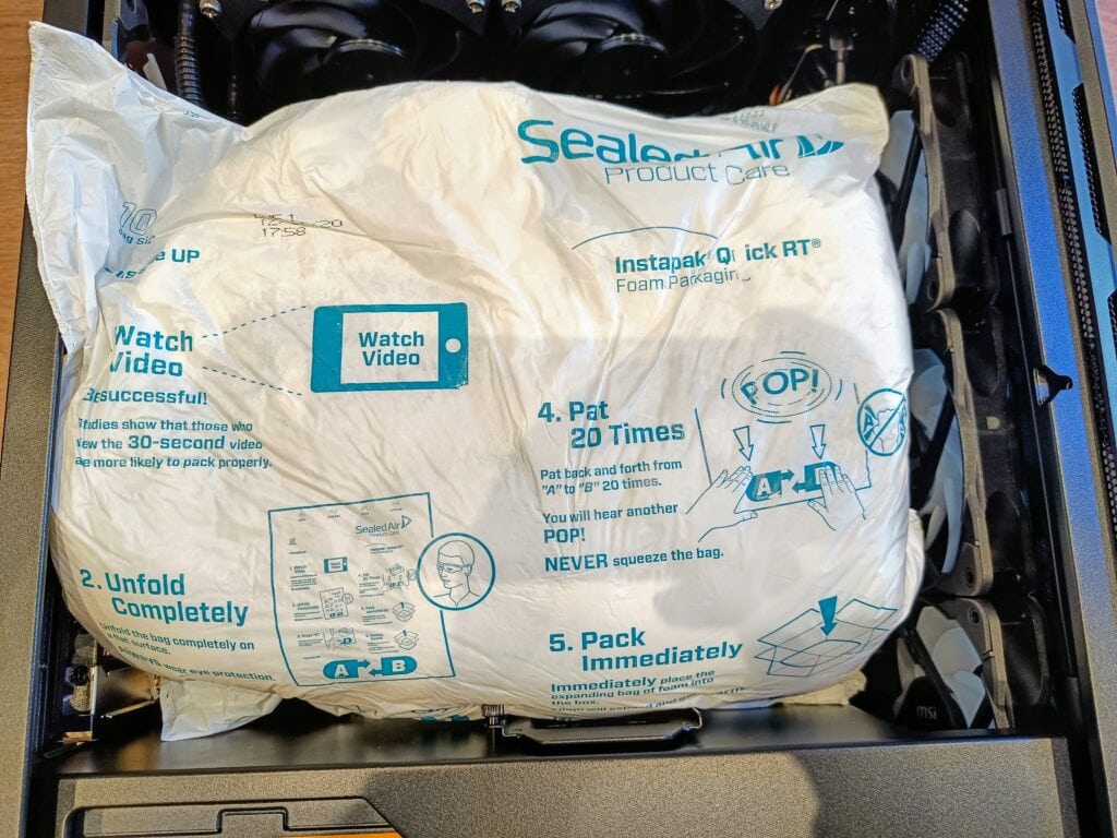 The interesting part is how they protected the GPU. The protective insert seems to be expanding foam that is held within a pouch, so when this is activated, it expands around the gaps within the case, going over the top of the GPU then down the sides. I can’t think of a solution that would be better than this, other than shipping the GPU in its own box not installed in the PC.