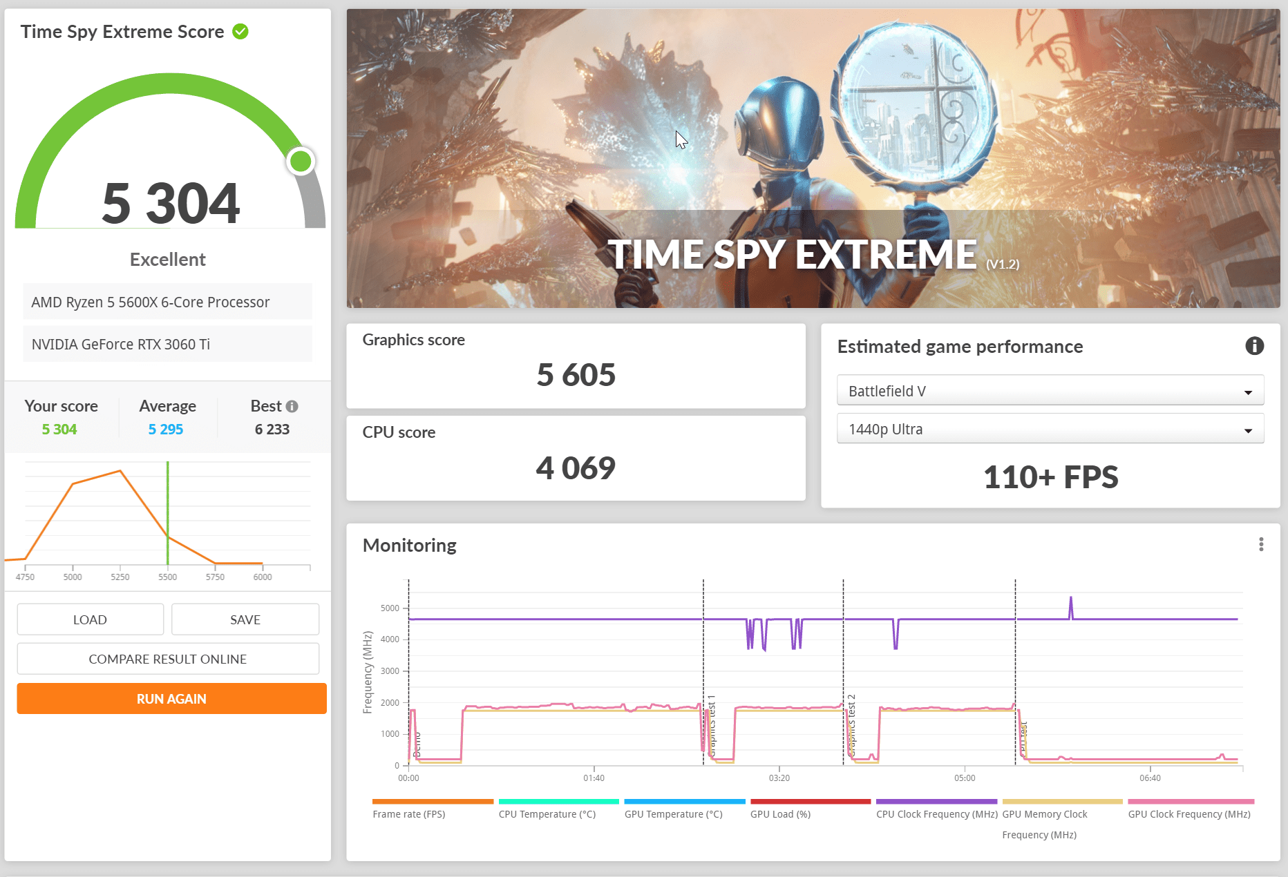 - 3DMark 13 – Time Spy Extreme: 5304 (Graphics: 5605, CPU: 4069)