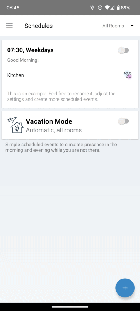 One feature that is quite good is the rhythm options. It is basically just a schedule, and you can do this with any light. However, this allows you to set up a whole day schedule based on different times of the day. So you can use the wake-up light in the morning set to 2700K cool white to provide you with some energy, then through the day, the colour temperature warms with the evening shifting to a warm white, which should help relax you ready for bed.