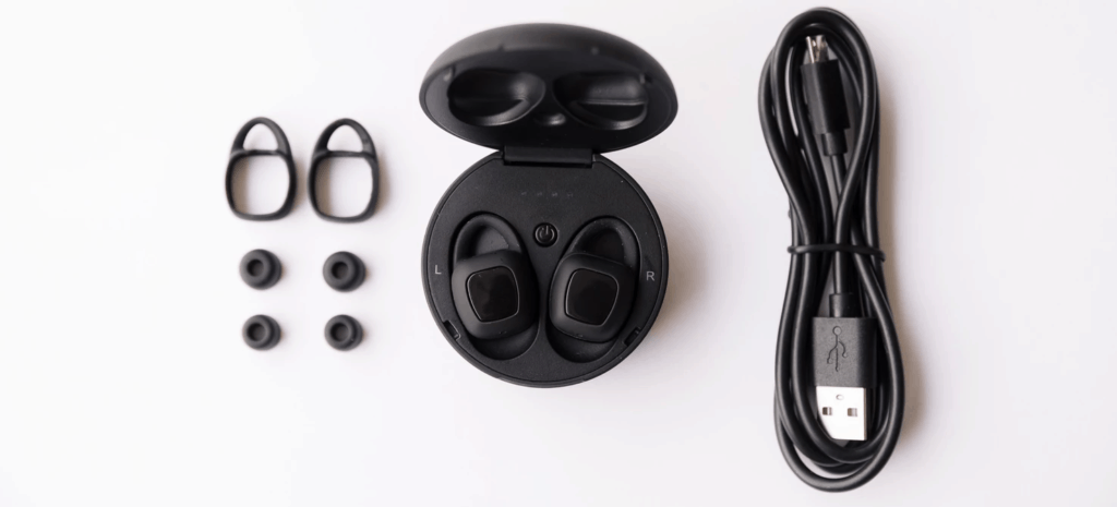 The supplied eartips are tiny, they are three sizes, but not much difference. I am not sure if they designed the case first then had to use smaller tips or what. They do fit in my ear OK securely even with the smaller tips, but I could immediately tell the sound wasn’t at its full potential. Swapping out with larger eartips made a world of difference with the sound.
