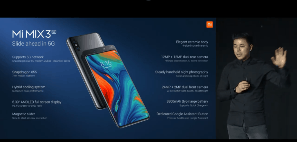 Following the Qualcomm section, Xiaomi officially announced the Mix 3 5G which features the Snapdragon 855 Soc with the X50 modem and it will be one of the first 5G devices to market.