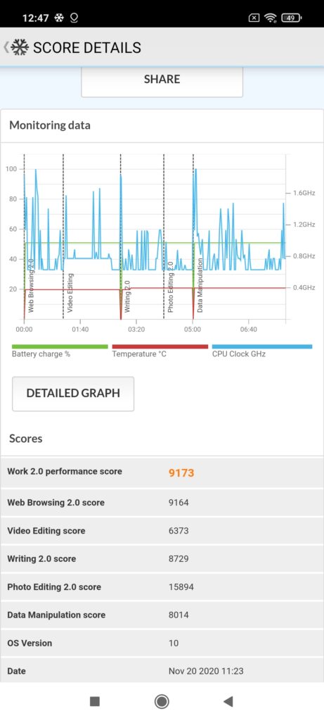 In Geekbench, we see almost 16% improvement in the single-core result and 12% for the multicore. This gives the Snapdragon 750G a similar CPU performance as flagship chipsets from early 2019.