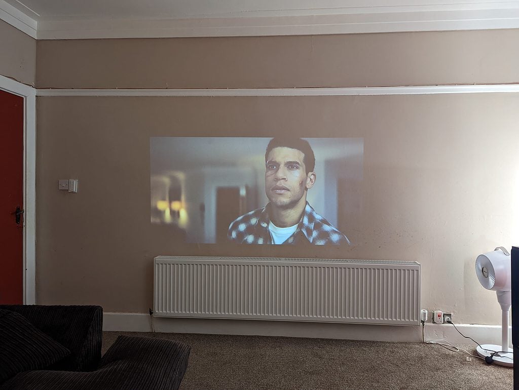 Switching off the lights and I’d regard the image quality as excellent. The main issue is that I am projecting directly onto my not-white wall with its grainy surface. Using a nice flat white projection screen should improve the quality significantly.