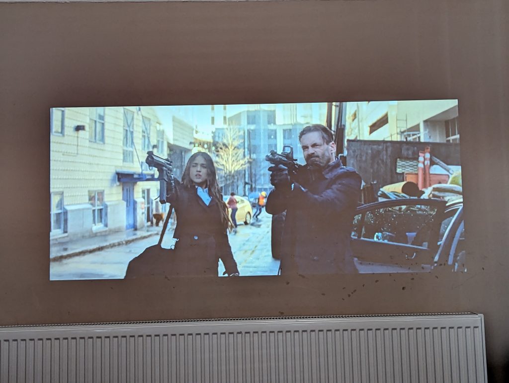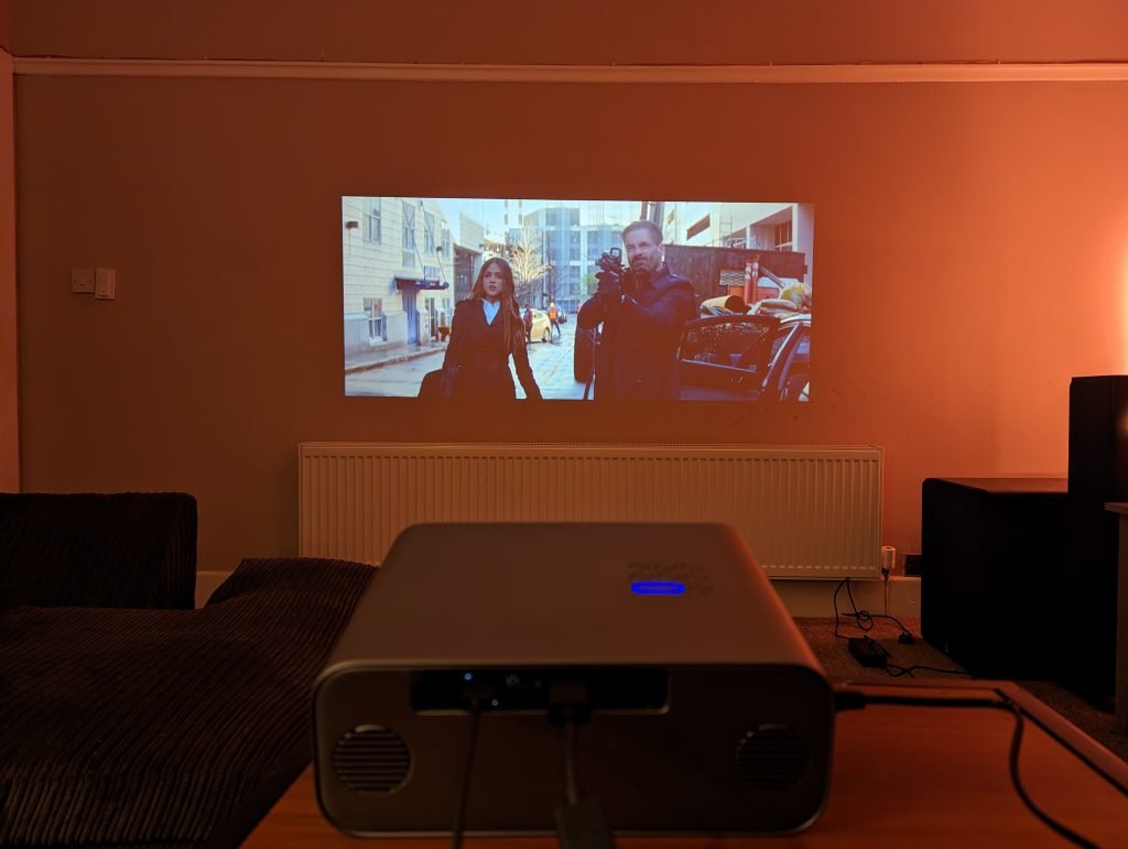 With this being 1080P and my projected imaging being quite large, when you look closely at the image, it is quite grainy. This will be made worse by projecting onto an off-white wall that isn’t perfectly smooth. When you are sat down behind the projector, it is less noticeable, and watching movies is perfectly enjoyable. It is obviously never going to be as detailed as a 4K OLED TV.