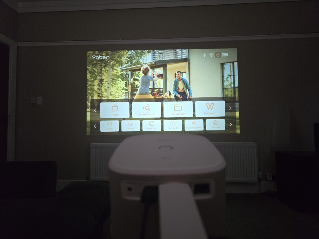 Yaber has made the unusual decision to use the basic Yaber OS for the projector itself, this has a similar level of functionality as the affordable Yaber projectors. There are no apps and limited functionality.