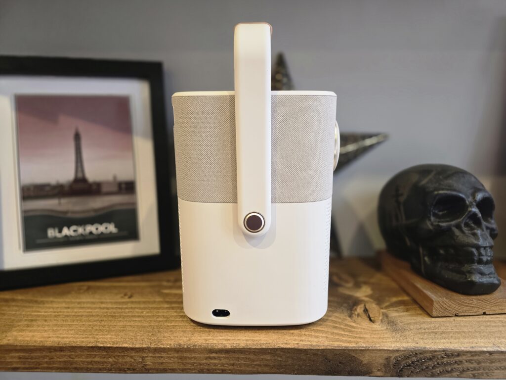 One minor gripe is the C7 figure of eight power lead to charge the projector. If it used USB-C Power Delivery, you would have the flexibility to extend the battery life with a power bank.