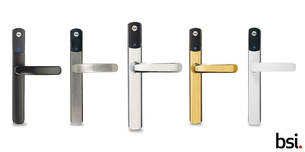 The Yale Conexis L1 is designed for multi-point doors, and it approaches the problem as you might expect, you replace all the lock and handle hardware. The lock has various electronics inside that turn the locking mechanism, and you control this via phone, tag, or keycard.
