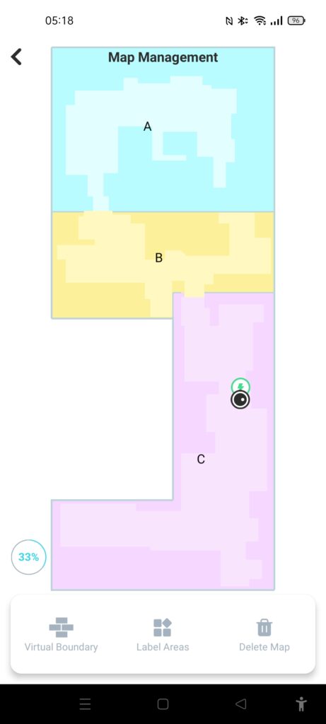 This uses vSLAM mapping, so there is a camera facing upwards from the vacuum, which will map out your property based on the various data points. This is different to LiDAR found on some competing brands; technically LiDAR is superior, the laser measurements offer quicker and more accurate mapping. However, the trend seems to be leaning towards vSLAM as it captures more data and offers the potential for future feature improvements. For me, it worked very well, and some of my rooms are not very well lit, which is one of the weaknesses of this technology.