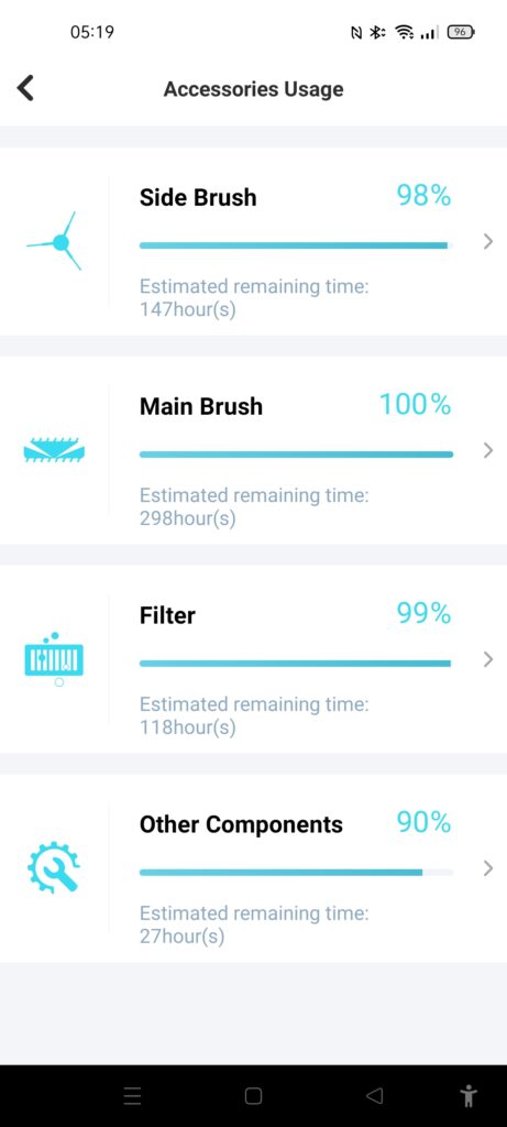 Within the app, you get a usage report on all the various parts such as the brush and heap filter.
