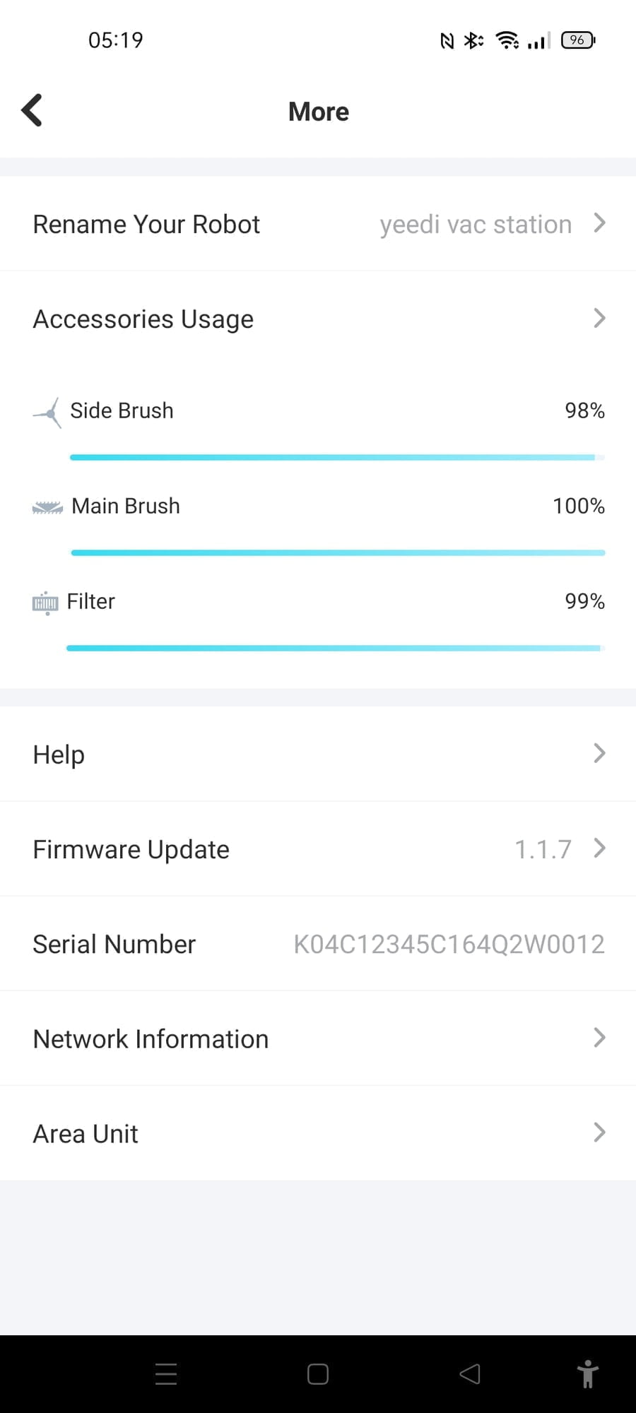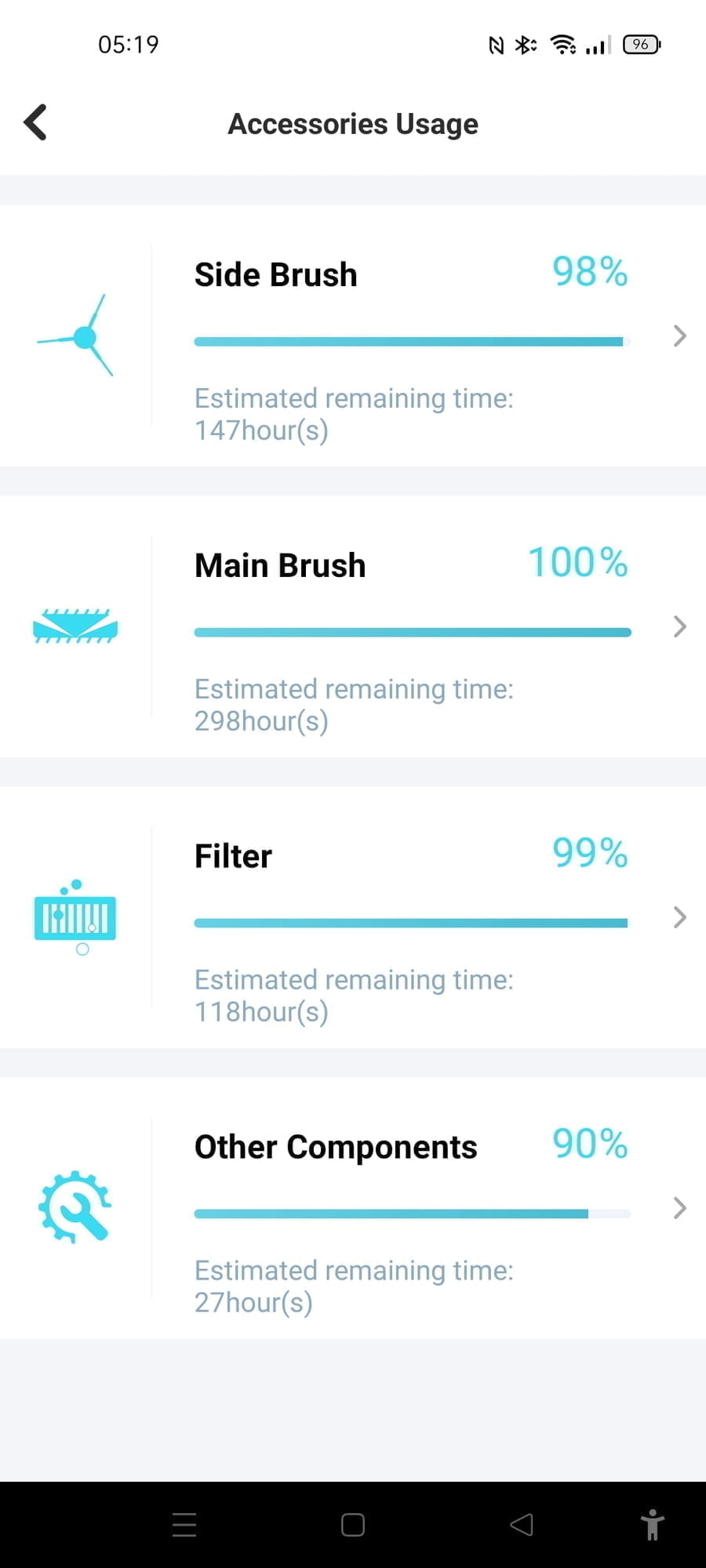 Within the app, you get a usage report on all the various parts such as the brush and heap filter.