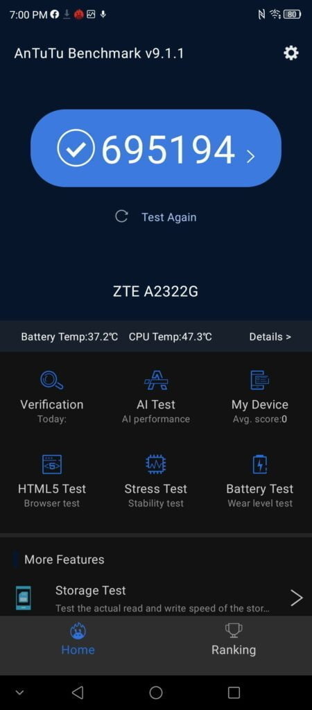 For whatever reason, ZTE keeps the CPU frequency very high for the PC mark test, so it goes full throttle for the full 11 hours. Whereas the likes of the Realme GT Master have a much lower performance score on battery tests as they reduce usage after a few runs.
