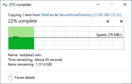 File transfers showed the same result, with read and write speeds staying consistently above 275MB/s.