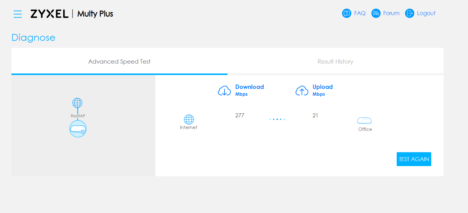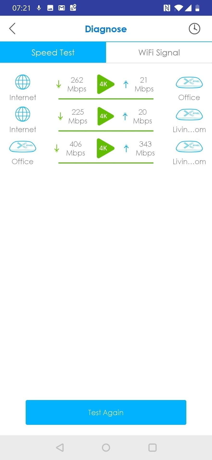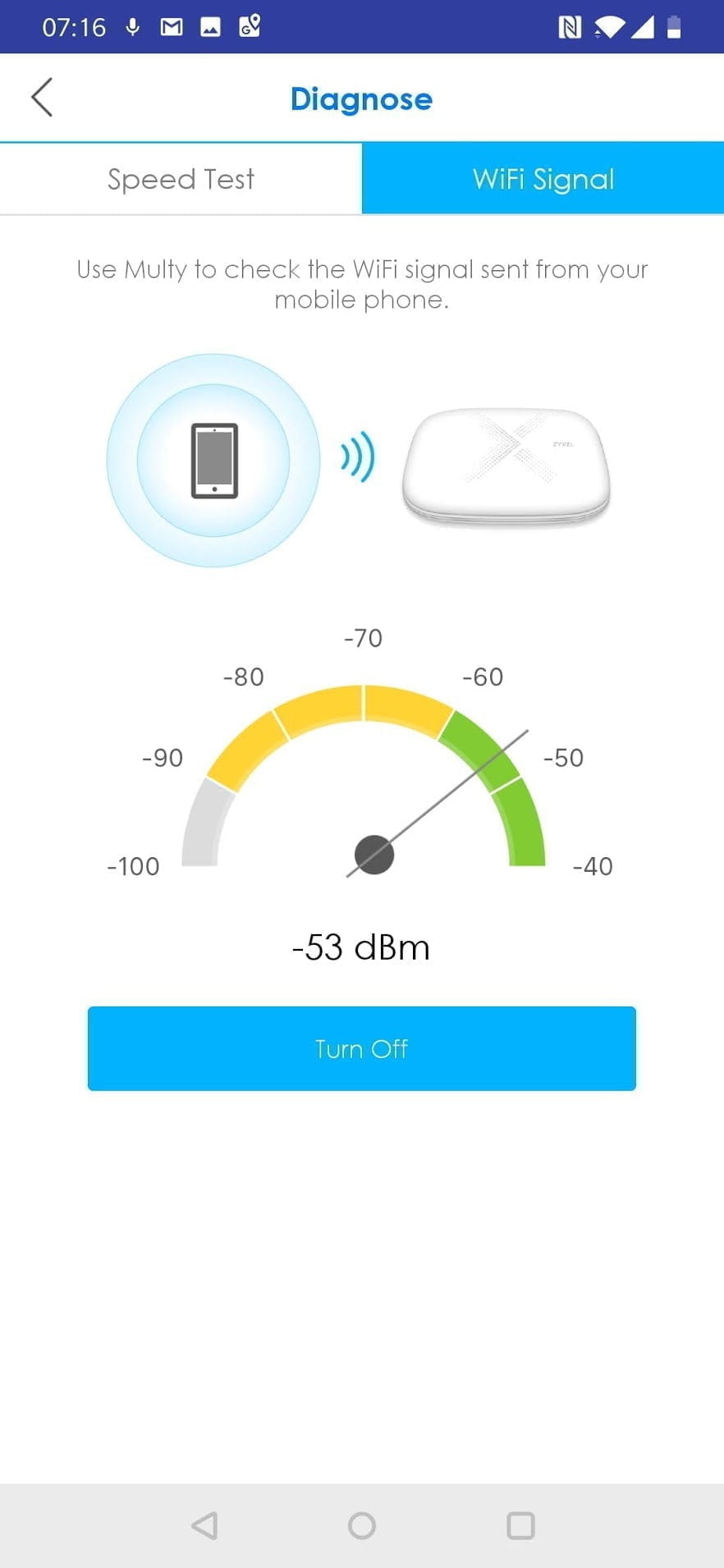 Within the app you have a Wi-Fi signal test which allows you to optimise the placement of your satellites in real time based on their connection strength. I set them up in the same room to start and was warned that they were to close and could cause cross interference with each other. You can then carry out further speed diagnostics between the internet and each satellite or between the satellites themselves. This is another useful feature for optimising your Network and something that was missing from the Netgear Orbi system.