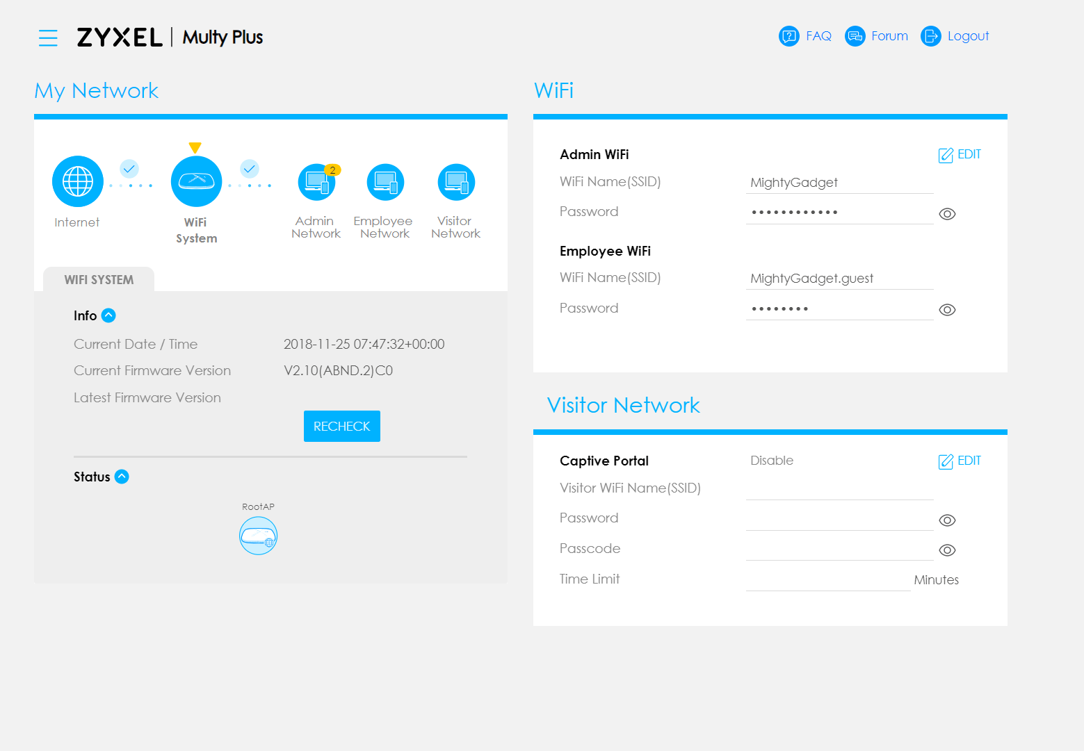 Both the employee and captive WiFi SSID works as you would expect, segregating my network from other users.