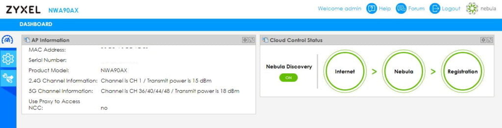 You can manage the NWA90AX locally via the web interface or using the Nebula cloud management system. I have covered this extensively before so I won’t go into too much detail.