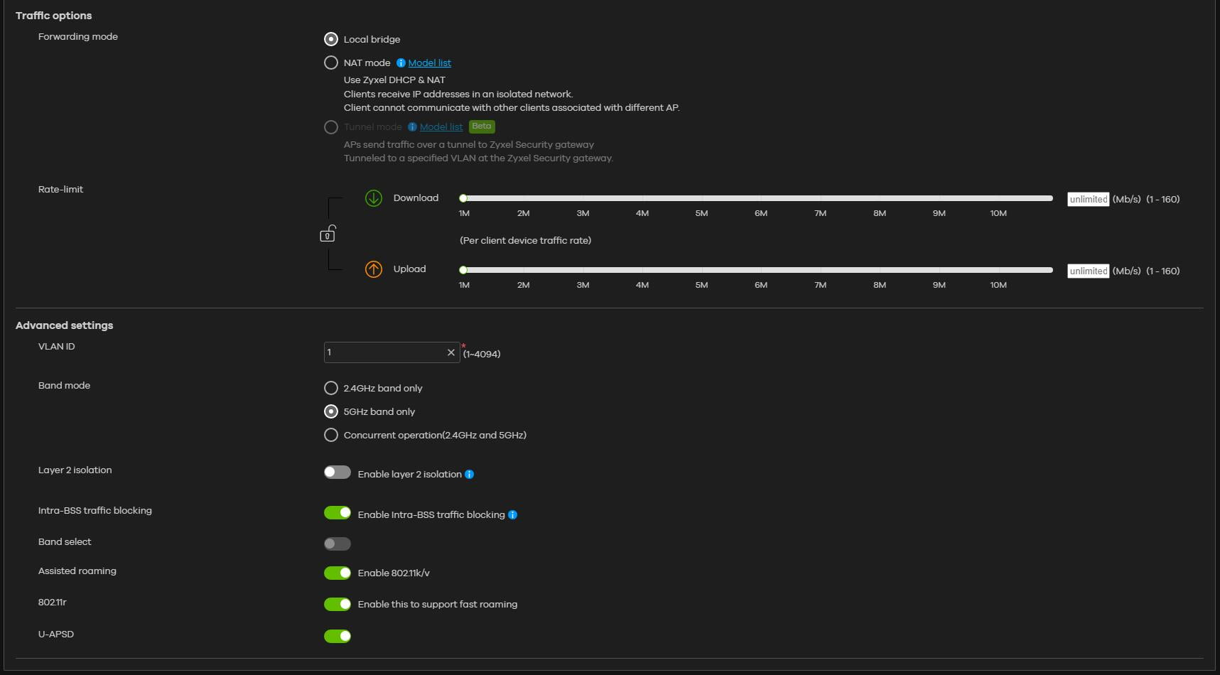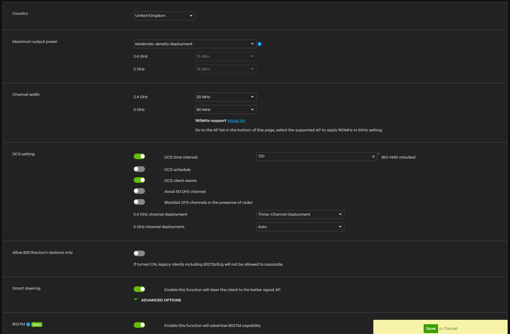 You can customise some of the settings of the AP by itself; otherwise, it will adopt your network-wide settings.